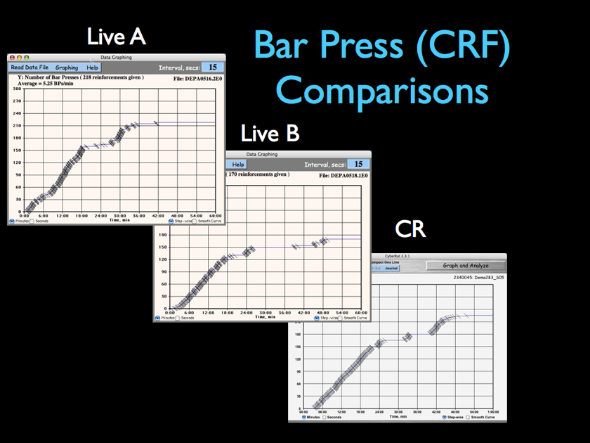 too quickly! Here's just one comparative example of two live animals reaching satiation across a 60 min session vs. a single CyberRat equivalent session: